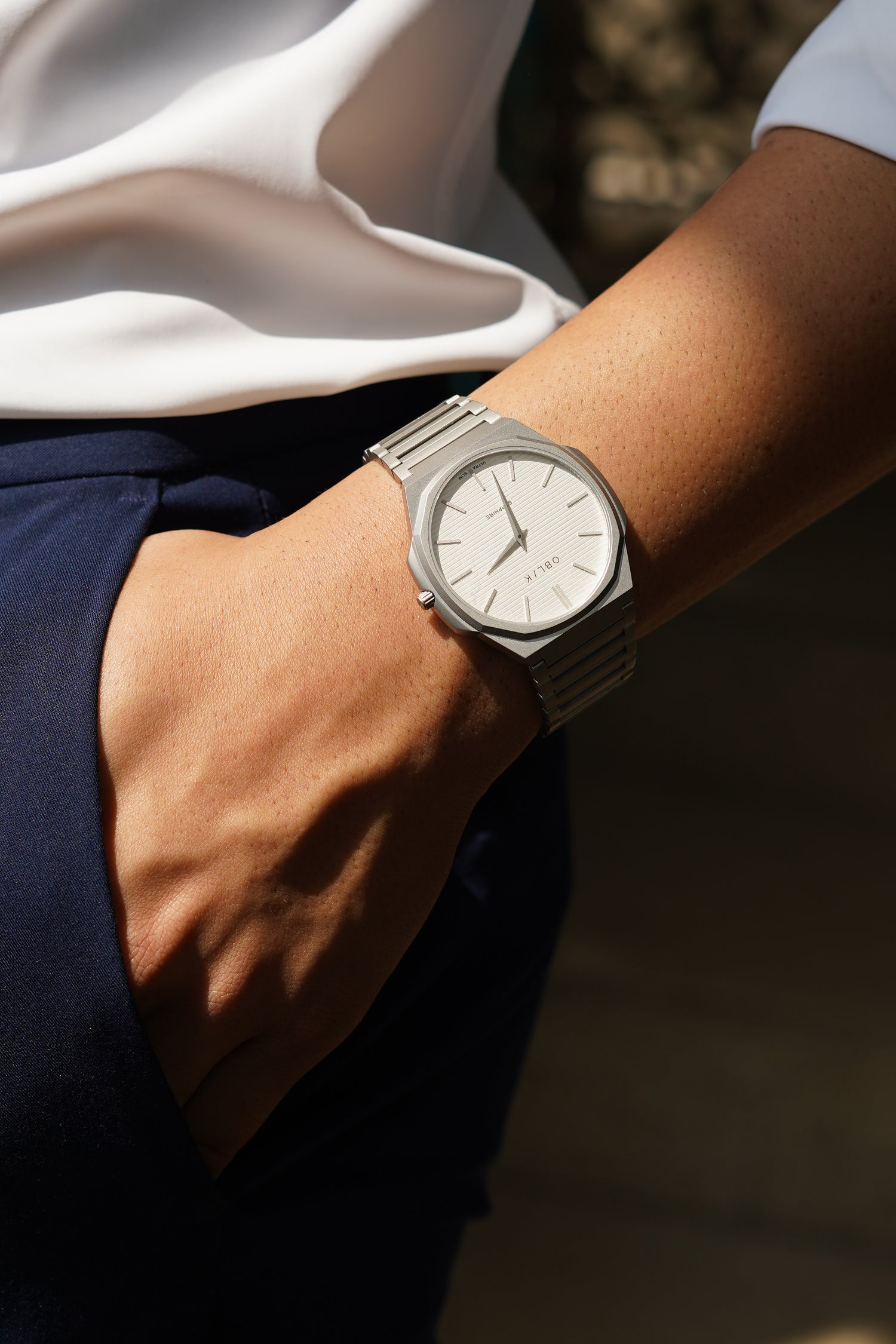 Protected byscratch-resistant Sapphire crystaland boasting5ATM water resistance, The Blade balances sophistication with durability, defying expectations for a watch this slim. Whether you’re at the office or out for an evening, this OBLIK creation is designed to make a subtle yet bold statement.